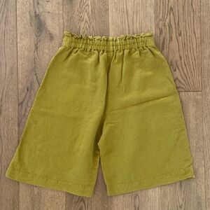 Elevate your casual wardrobe with these olive green high waist shorts. Designed for comfort and style, they feature a relaxed fit and an elastic waistband.