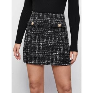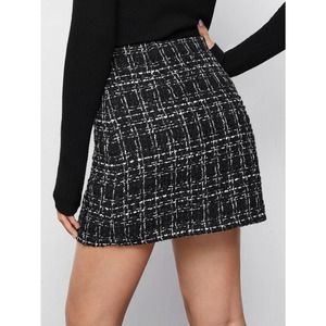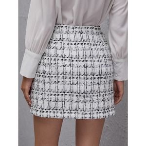 High Waist Plaid Tweed mini Skirt white