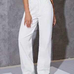 High Waist Plain Design Denim White Pants Loose Fit Casual Womens Small