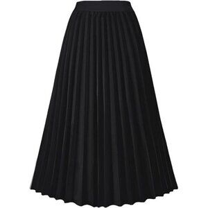 Features: high waist, elastic waistband, pleated, A-line, solid, maxi skrit, midi skrit. Elastic pleated waist and soft fabric, comfortable to wear