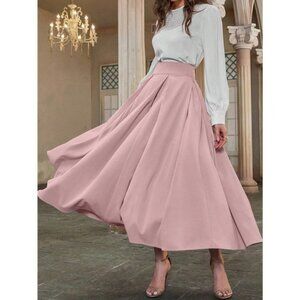 High Waist Pleated Detail Flare midi Skirt business casual black