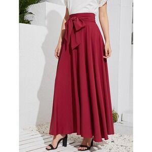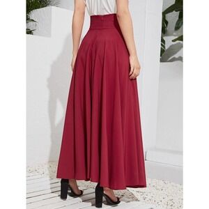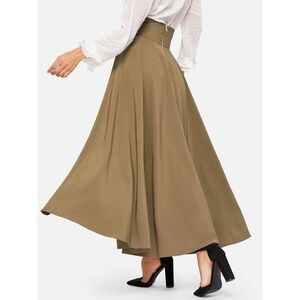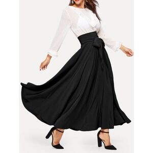High Waist Zip Back Knotted Swing maxi Skirt black