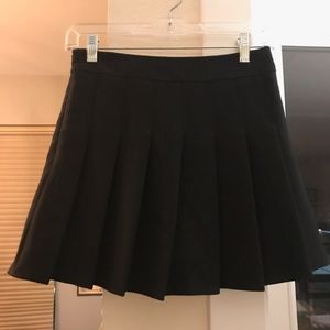 American Apparel-style Black Pleated Skirt (Fei Li La, Size Small). High waisted & very flattering! Soft material w/ zipper on side. Perfect above the knee length! Would fit someone with a 24-26” waist. Waistband is NOT stretchy. Skirt is also a skort, with attached comfy boyshorts providing a little extra sporty coverage! Excellent condition, like new. Worn it 1-2x and gotten lots of compliments, but I've never able to consistently integrate it into my wardrobe!