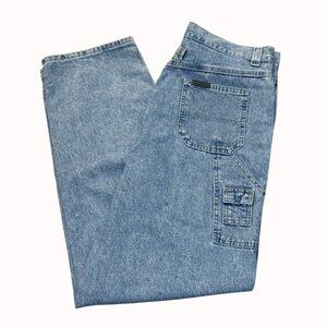 Light Wash High-Waisted Carpenter Denim Jeans M Riveted By Lee Vintage 1980s USA Made