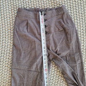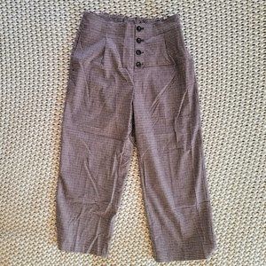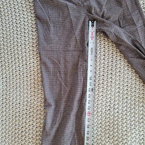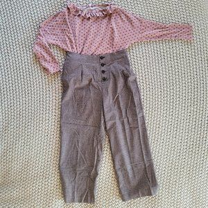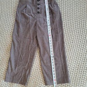 If you love the style of 1910's New York City paper boys, that's the vibe these pants give. The print is sort of a gingham meets plaid, depending on your interpretation. They're a very soft material with a button front and ruched elasticized back. They're labeled a large but I'd recommend someone who is a medium to between M-L.