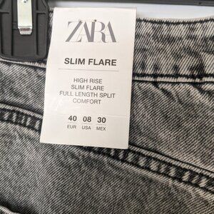 These grey washed Zara High Waisted Flare Jeans have never been worn - tags attached! They have a wripped inseam ankle which is very stylish currently.