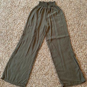 Super high waisted boho flowy pants. These are very stretchy and fit my waist well but are a few inches too long for me. Waist could probably fit a 25-27. Length is equal to a "long" in normal pants.