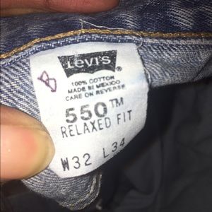 W:32 L:34 Levi 550 jeans *one pair (on RIGHT) has darkness on the Levi patch -when uncuffed there is a small rip on hem *pictured*