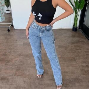 High Waisted Medium Wash Cargo Jeans | NWT | OOTDFASH Size 3 // 25