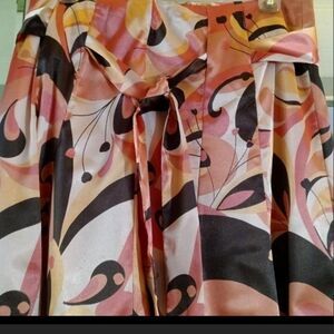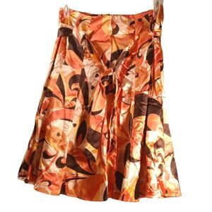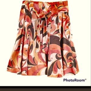 High Waisted Pink Orange Geometric Print A-line Scarf Shirt Sz 8