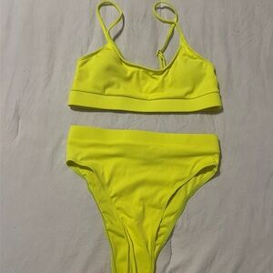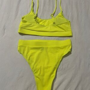 Neon yellow high waisted ribbed bikini with removable padding #neonyellow