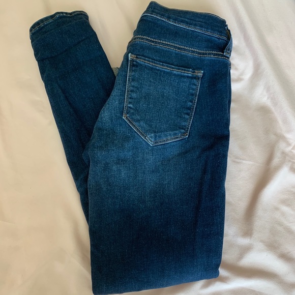 high waisted or medium waist jeans depending on the person