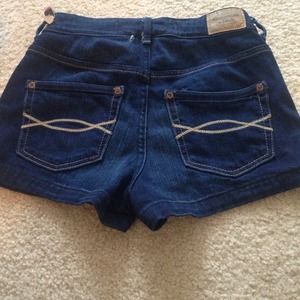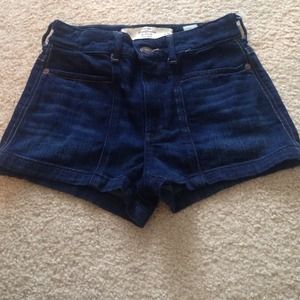 Dark wash high waisted short. Purchased on eBay. Has a small tear at top near waistband (that's why they're so cheap) Never worn.