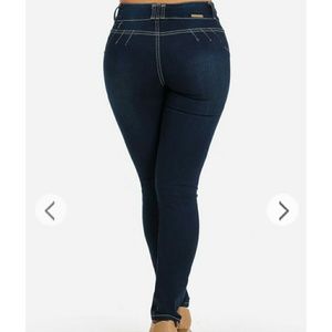 Stretchy high waisted skinny jeans with 3 button closure, large belt loops, white stitching, 2 faux pockets in front. Size 13 womens.. Waist measures 32 inches. Cut small at waist. Pet and smoke free environment.