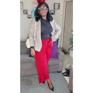 High Waisted Tie Side Invisible Zipper Wide Leg Work Pants