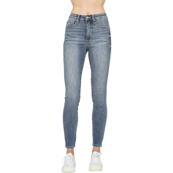 High Waisted Tummy Control Contrast Wash Skinny Jeans — Flattering and modern style.