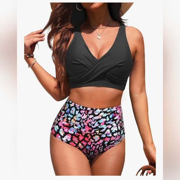 •This bikini set features a twist-front push-up bikini top and a high-waisted, full coverage bikini bottom.