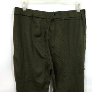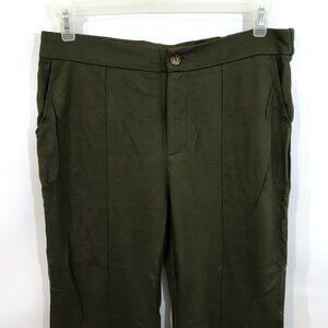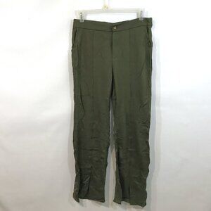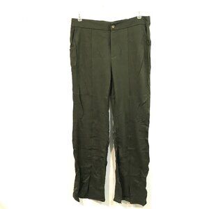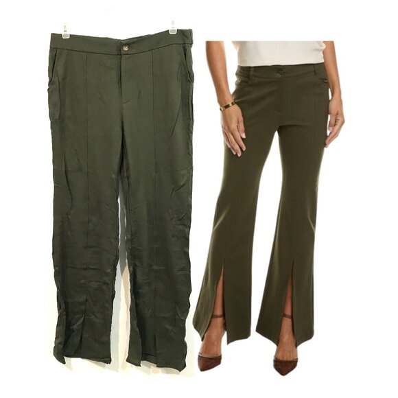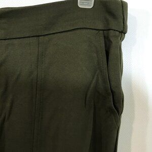 High Waisted Wide Leg Pants Pockets Front Split Flare Leg Olive Green Knit XL