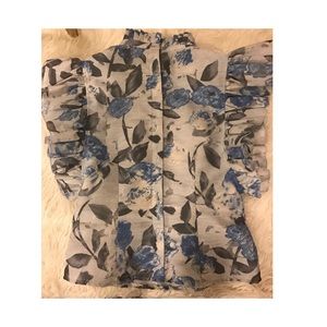 This beauty commands all the attention when you both enter and exit any room. With its combination of roses in both blue and gray makes it easy to pair with jeans or a skirt. Worn once only for a quick breakfast date.