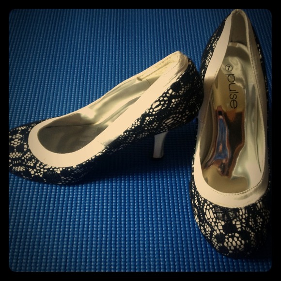 White with black lace heels. Only worn once.