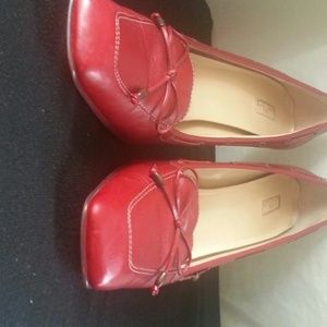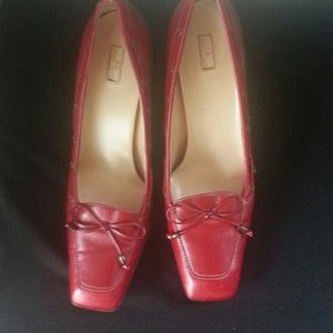 Anne Klein red brick heels slightly used its a 9Medium in size didn't fit my foot needs a new home. A good shoe for wearing in the office .
