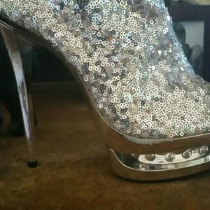 Sparked high heels w/ rhinestone toes. Sexy stilettos stand about 5.5 inches w/ 2 inch platform