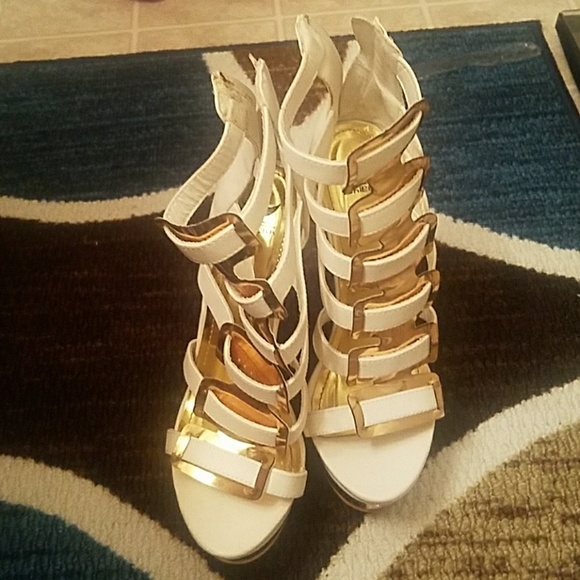Lught worn Gold and white heels worn once