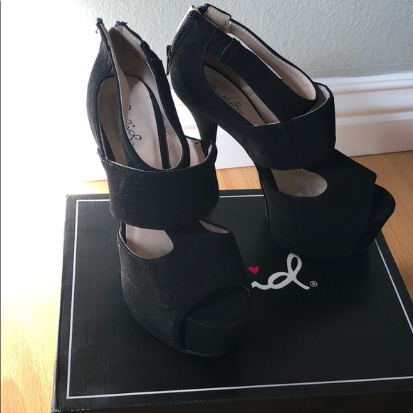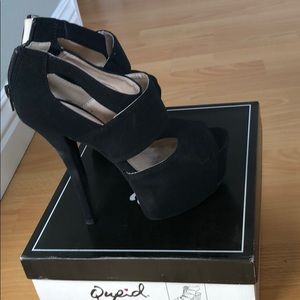Black, suede high heels. Used but still in ok condition. 5 inch heels.