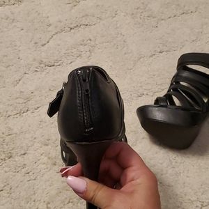 Brand new high heels. Super cute!!!!!! Purchased at Journey's on line. Closest they had to my size, but still a little snug. Only tried on. Never worn