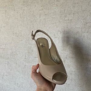 tan open toed high heels