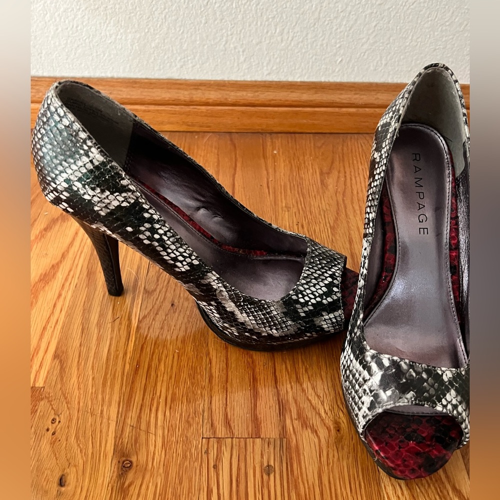 High heels | Peep toe | Size: 10| Snake skin design | Worn once