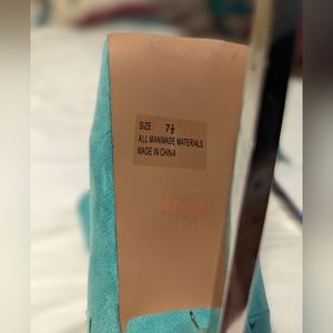 these are beautiful! mint suede stiletto high heels in size 7.5. they've been worn once or twice. they have beautiful detail on the outside of the heel. They can be for every day wear or going out, or for special occasions.