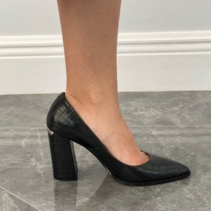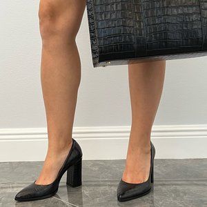 High heels, Leather, Shoes, Black, Crocodile skin pattern, just shoes