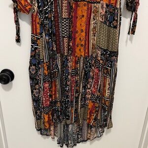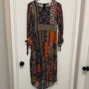 Embrace a bohemian vibe with this stunning patchwork dress. Featuring a mix of vibrant colors, it's perfect for any occasion.
