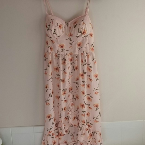 Spring high/low dress. Color is more peach with sunflowers. Nice for a picnic or day out and about.