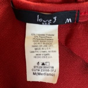 Medium high low dress, the dress looks red in the picture but it’s a rust orange color. Bottom color is brown. Lightweight breathable
