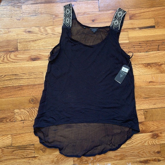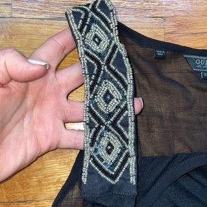 Guess black sheer high low top with beaded and sequin shoulder detail. Brand new never worn.