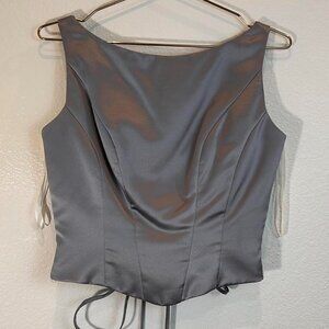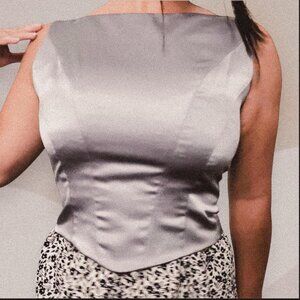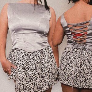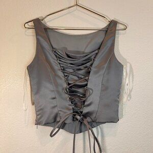High neck regent y2k silver metalic steampunk style lace up victorian renaissance silky top