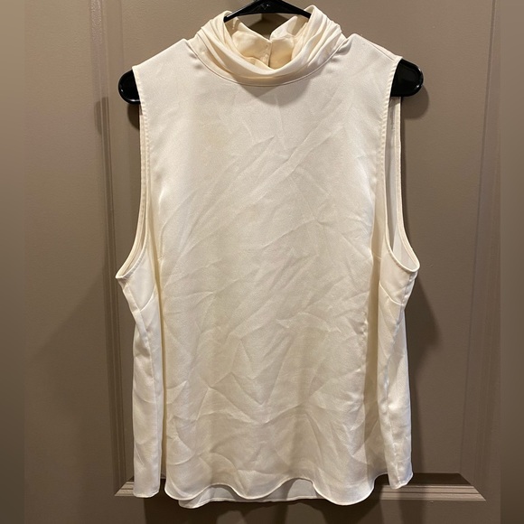 This beautiful cream high neck tank will dress up any casual outfit! Very breathable material and wide arm cut outs for extra bust space. Bottom hem is very flowy!