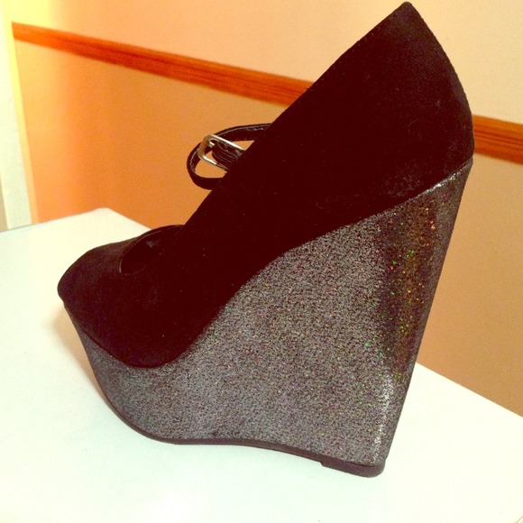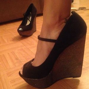 Perfect New Years shoes. I love the sparkle, such a feminine touch! 4 inch wedge. Very comfortable to walk in. Cozy fit. Never worn.