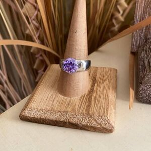 High polished Stainless Steel Ring with Amethyst AAA Grade CZ Size 9