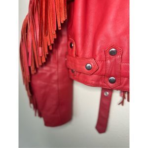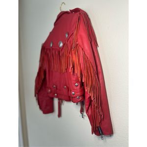 Red genuine leather fringe western jacket. Wear this beauty to country concerts, rodeos, date night, Stagecoach, festivals.