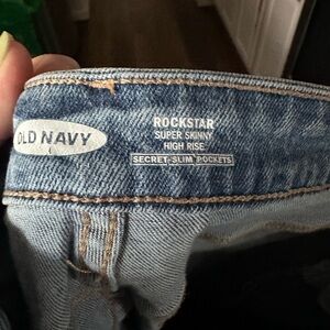 Light wash, super skinny, ankle, Old Navy denim. Has plenty of stretch but still has a thicker denim feel. 26 inch inseam. No holes, tears or stains. All wear is factory produced.