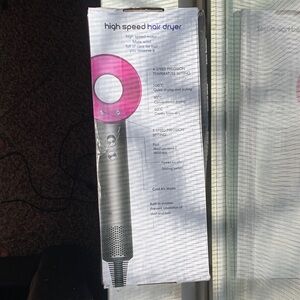 High speed hair dryer with a ring and sleek gray body. Modern and efficient design. Functions the same as the Dyson it’s brand new everything is still wrapped in the package never used. It comes with the US plug. Feel free to throw in offers that are reasonable. Please make sure that you see all the photos because the actual color of the hairdryer is gray. SAME DAY FREE SHIPPING!!!