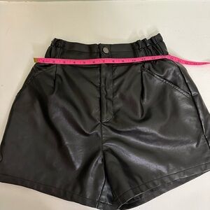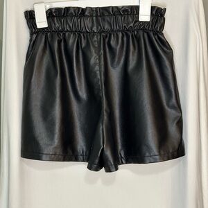 Elevate your style with these chic black faux leather shorts. Perfect for a night out or a casual day look. Comfortable and trendy, these shorts are a must-have in your wardrobe. Condition is pre-used and has a small mark on the back. See photos everything else is perfect.