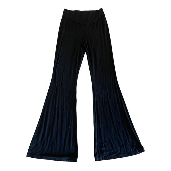 Flared Leg Black Yoga Pants. High waisted with elastic waistband. Comfortable with a flattering fit. Petite size small.