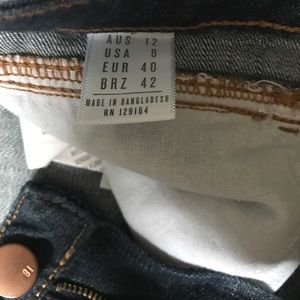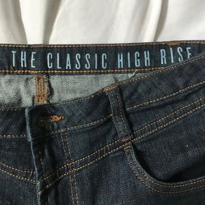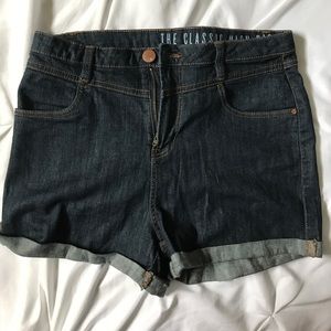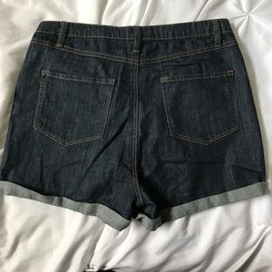 High waisted dark wash denim shorts. Never worn and in excellent condition!