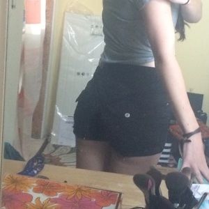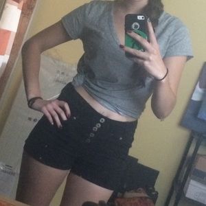 Black high waisted shorts from Rue 21. They have all button closure and pockets you can actually fit something in. I bought these because they fully cover my butt, but hardly ever wore because the black makes my legs look really pale.