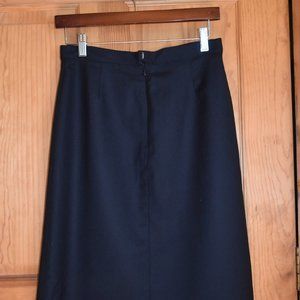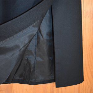 Classy black wool skirt. Lined, slit to one side of front, sits high on the waist.