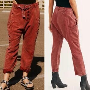 Free People creme and maroon pants.